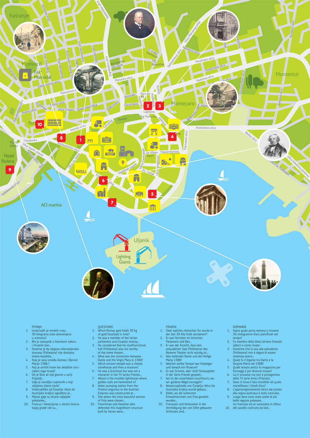 Pulski filantropi, dobročinitelji tisućljetne Pule mogu se pronaći na svakom koraku. S jedne strane Itinerera prikazane su lokacije filantropskih djela i zdanja, a s druge kratke crtice o istima. Mapa je interaktivna te građani mogu igrati igru i odgovarati na pitanja, a odgovore - ispunjenu mapu, odnijeti u TZG Pule i tako sudjelovati u nagradnoj igri.