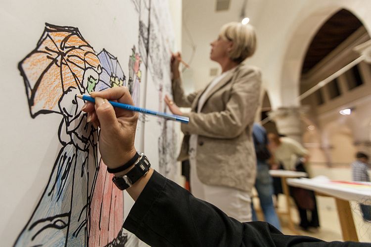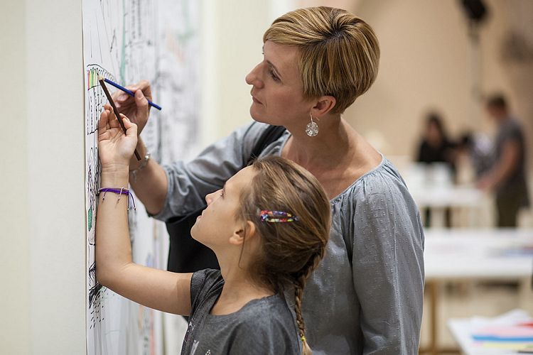 Svi oni, veliki i mali, koji su na prvom katu Svetih Srca uzeli bojice u ruke i bojili veliki crtež na zidu, do sada nisu znali kako je autorica tog crteža ujedno i najmlađa suradnica na izložbi, trinaestogodišnja Mia Duić. Upravo je Miju, učenicu 7. C razreda Osnovne škole Veruda, odabrala učiteljica Korana Lukić Šuran, jedna od suradnica u samom postavu izložbe, za izradu velikog crteža Valerijinog parka koji svi posjetitelji Svetih Srca u listopadu mogu bojati.